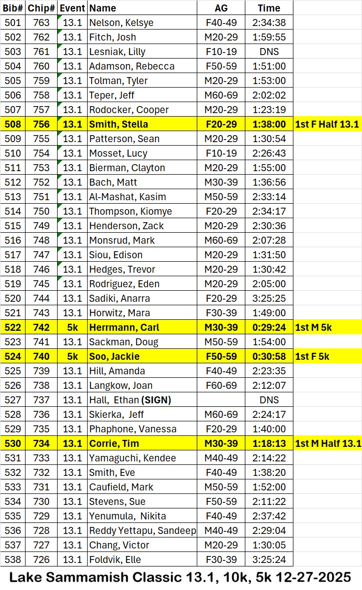 Lake Sammamish Half 13.1Sat, Dec 27Issaquah