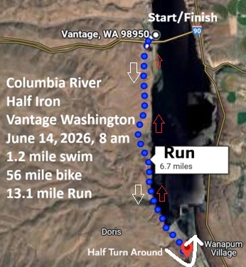 Columbia River Half Iron FULL Triathlon 1.2S, 56B, 13.1RSun, Jun 14Vantage Grand Resort