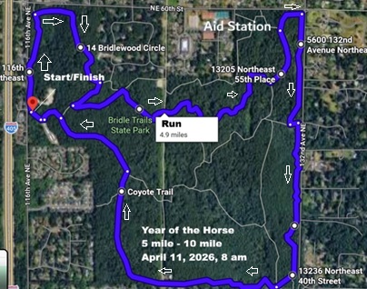 Year of the Horse Bridle Trails 5/10 mile Trail RaceSat, Apr 11Bridle Trails State Park