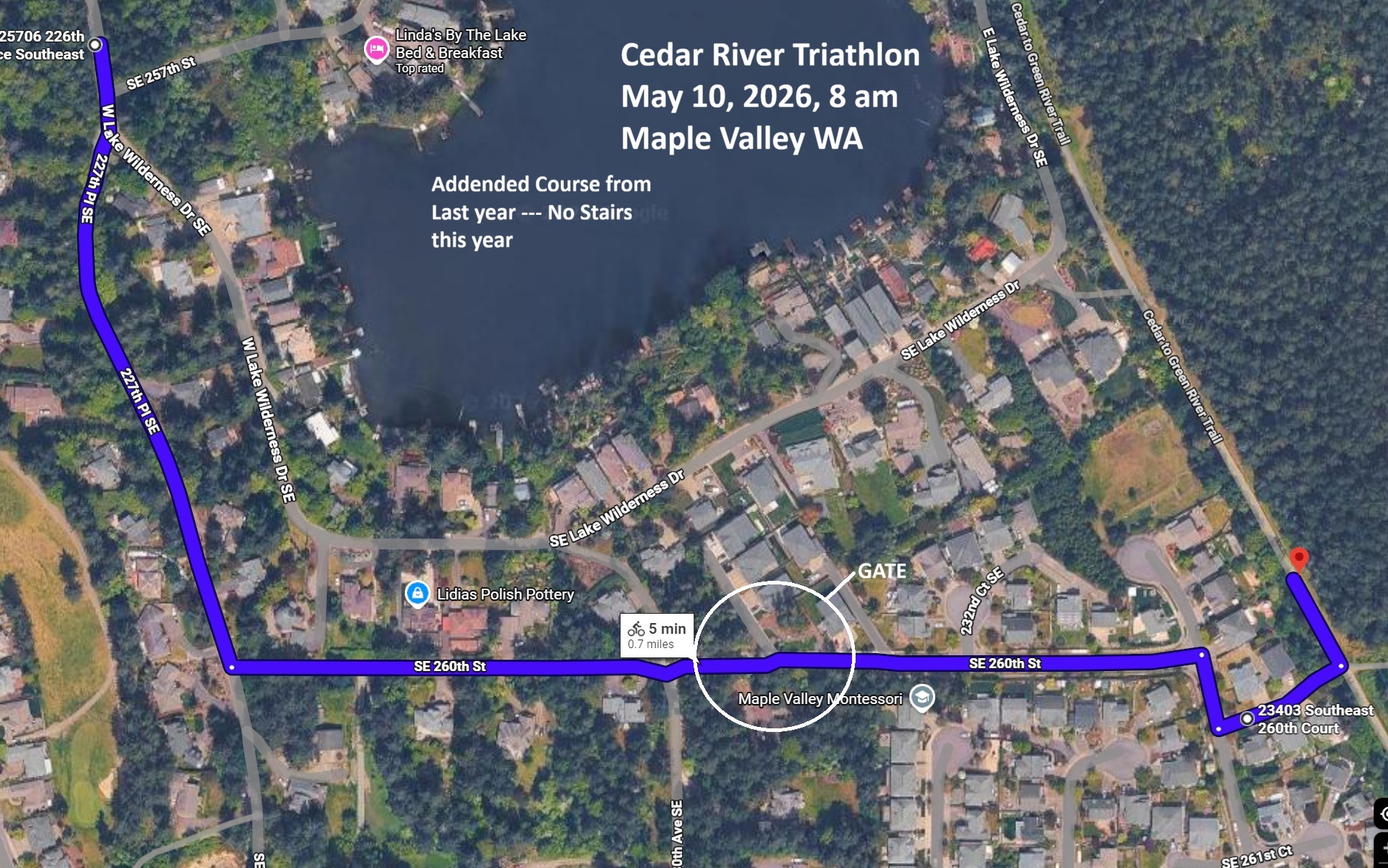 Cedar River TriathlonSun, May 10Lake Wilderness